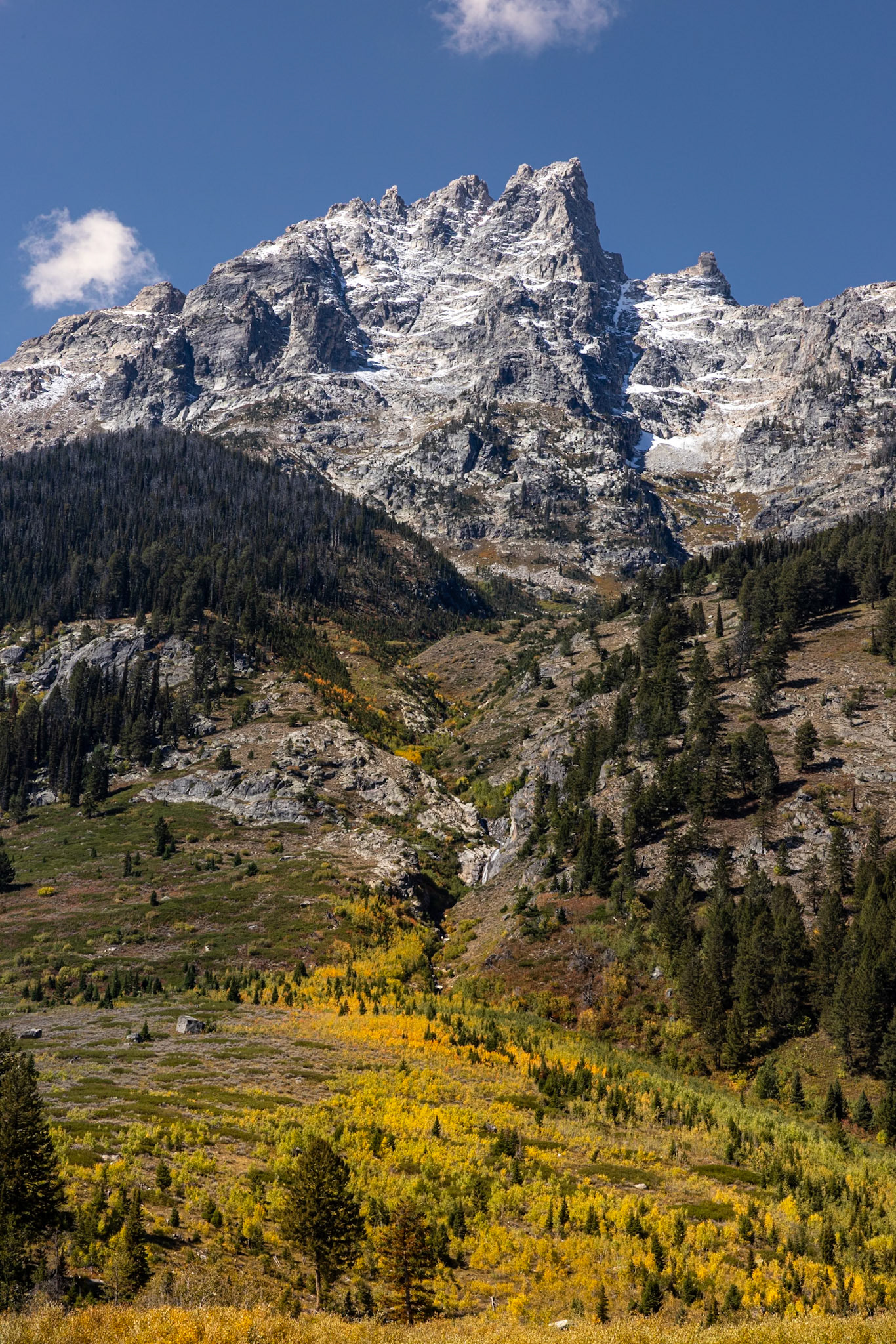 Although GTNP is visited by millions of tourists each year, the vast majority don't venture beyond the parking lots and turnouts. Beyond these crowded paved areas, the park remains largely pristine. More adventurous souls (and soles) can hike deep into the park's interior via trails that wind their way up the many canyons that bisect the towering peaks. If properly outfitted, hikers can continue for days, eventually exiting the park on the southern or western slopes. GTNP is home to some of the world's most beautiful and interesting flora and fauna. No joke, don't feed the bears and always carry bear spray while hiking. And slow down on the roads since the elk, moose, deer and buffalo seem to emerge from nowhere to cross the roads, especially at dawn and dusk.